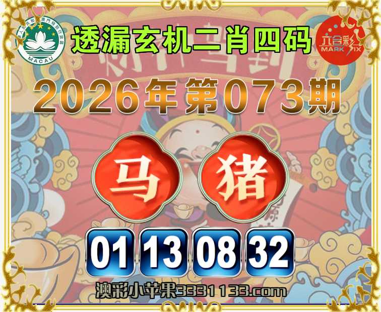 073期: 《透漏玄机》 二肖四码【马猪】【01.13.08.32】开:鸡34