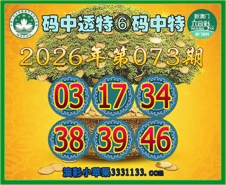 073期:『码中透特』 ⑥码中特【03.17.34.38.39.46】开:34